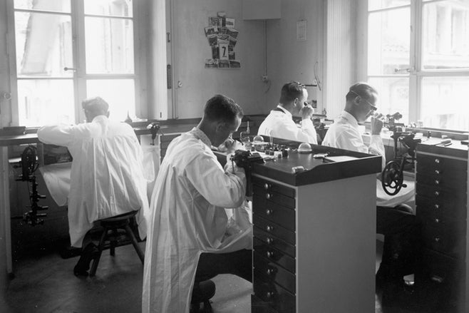 In the 1920s Gübelin opened its own jewellery atelier and at the same time set up a small gemmological laboratory so that it could test – and be sure of the authenticity – of the stones its jewellers used. It also continued making and repairing fine watches for a discerning clientele, developing a reputation that soon reached throughout Europe and overseas.