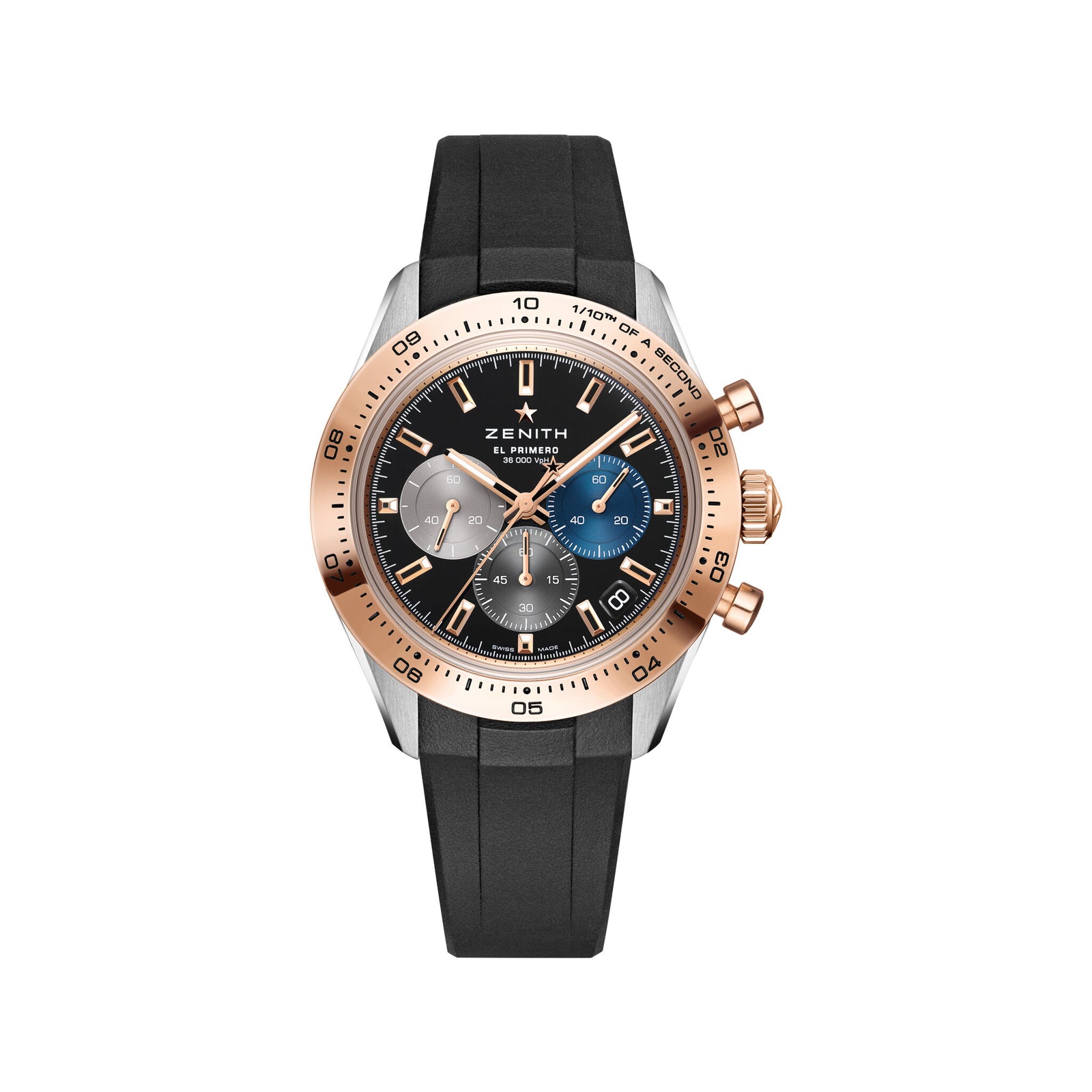 • Men's wristwatch with automatic movement, equipped with the calibre EL PRIMERO 3600, with a rose gold case, polished bezel and sapphire crystal, a white dial with indices, decentralised small seconds and date display, chronograph function, water resistance 100 and a rose gold bracelet with folding clasp.