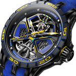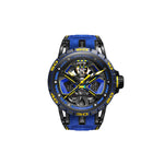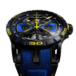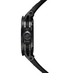 • 钛表壳男士腕表,配自动机芯和哑光表圈,表壳为黑色。镂空表盘带刻度,中置秒针,无日历,黑色橡胶表带配折叠扣,蓝宝石玻璃,防水 50。