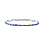 • 白金Rivière手链,镶嵌有总重 %Total Carat Main% ct 的圆形切割蓝宝石。经典的Rivière设计充分展现蓝宝石,并以内敛的优雅环绕手腕。