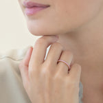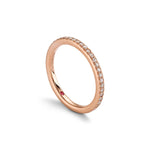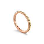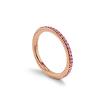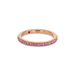 • 这枚玫瑰金永恒戒指全圈镶嵌42颗粉色、圆形蓝宝石;它们的总重为0,56 ct。