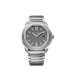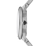• 钢制男士腕表,搭载自动机芯,具备中央秒针和日期显示,表壳配哑光表圈与蓝宝石玻璃,防水性能 100。黑色表盘配阿拉伯数字与刻度,银色钢表链配折叠表扣。