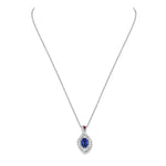 • 这款白金项链镶嵌一颗绿色椭圆形切割蓝宝石(1.035 ct),并配有四颗圆形多色蓝宝石(0.33 ct)以及30颗明亮式切割钻石(0.34 ct)。