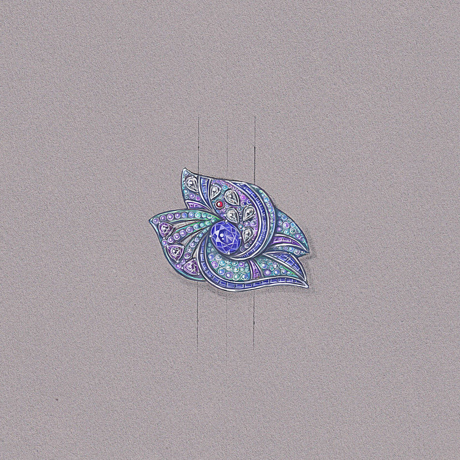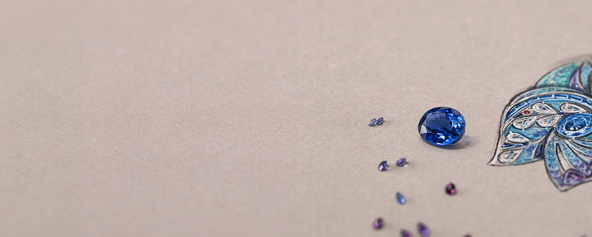 The organic design of this jewel is reminiscent of the wings of a papillon covered with sapphires in a sophisticated mix of cuts and colours, evoking spectacular and vibrant light reflections.