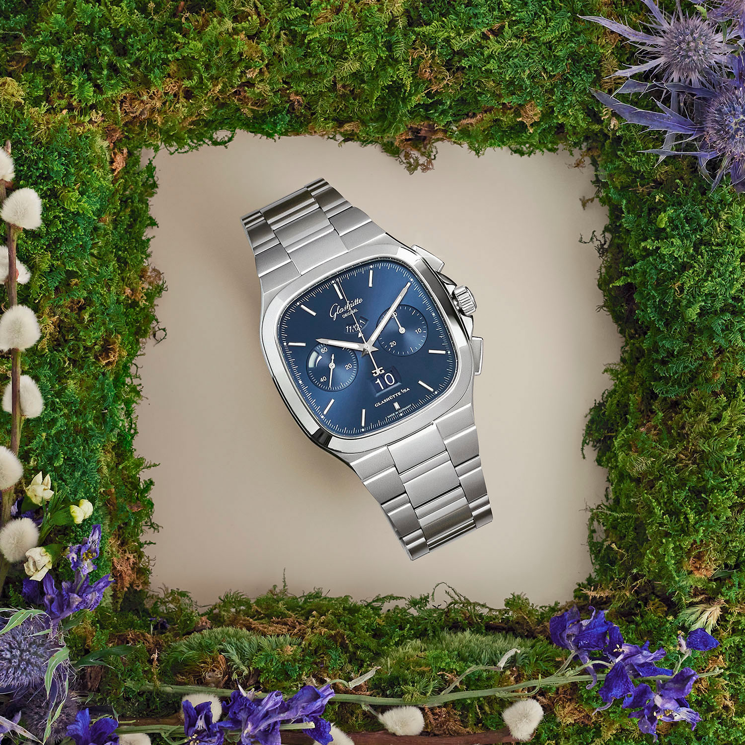 finishing touch to this watch. more of the brand watches by Glashütte Original GLASHÜTTE ORIGINAL PANOMATIC LUNA With the PanoMatic Luna, Glashütte Original adds heavenly details to modern timepieces for her [...] strap with a pin buckle adds the finishing touch....
