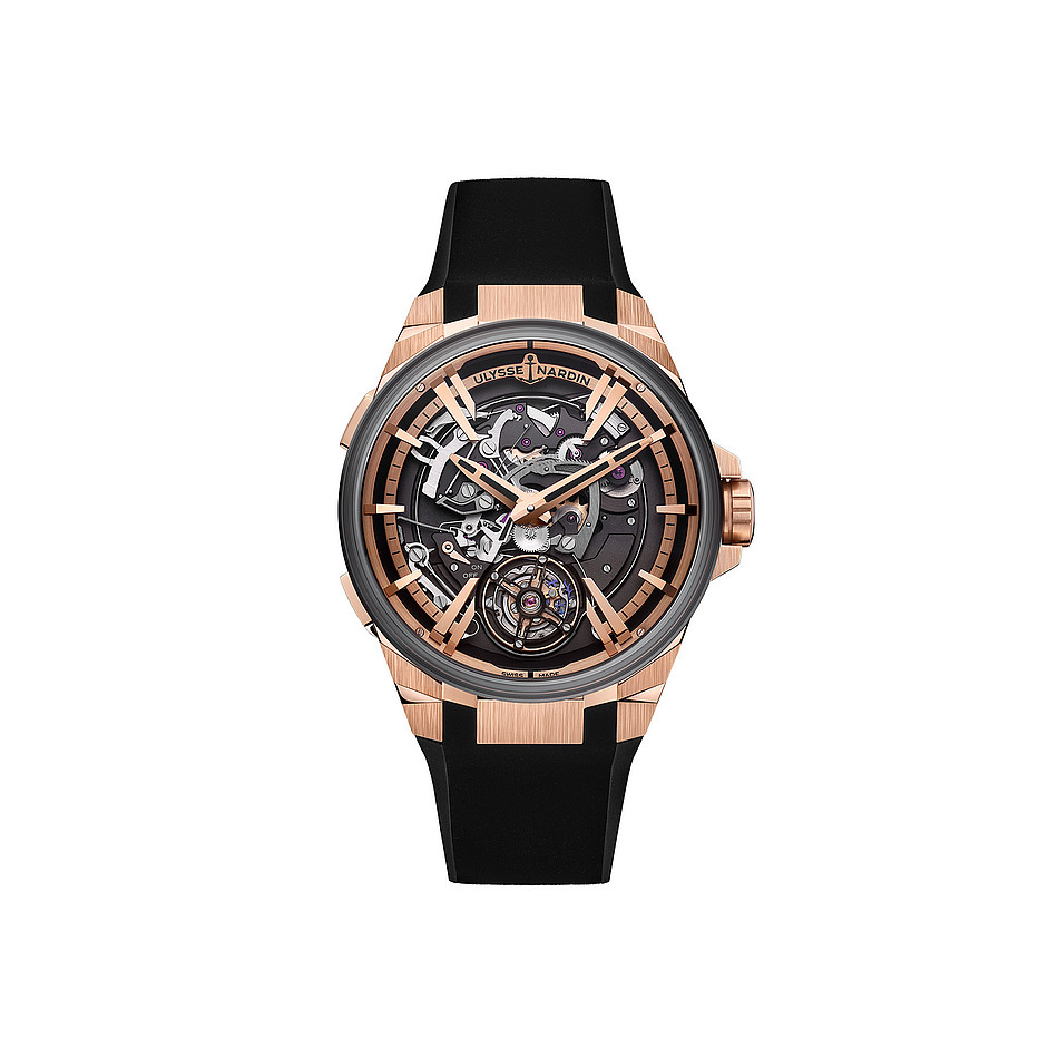 Following the reveal of the Ulysse Nardin Blast last year, this model convinces with the same thrilling design, use of high-tech materials and flying tourbillon complication as its predecessor. But, unsurprisingly, the latest version has something even more special hidden deep inside its mechanical body. For part of this skeletonised treasure is a chiming mechanism, the eponymous Hourstriker. To allow the integration of this extraordinary complication, Ulysse Nardin developed the UN-621 calibre specifically for this timepiece. Together with the French audio technology company Devialet, Ulysse Nardin’s specialists developed a system that amplifies the acoustic waves of the watch gong. This innovation allows for a louder, clearer and more pleasant sound while using less energy from the power reserve than other, comparable systems.