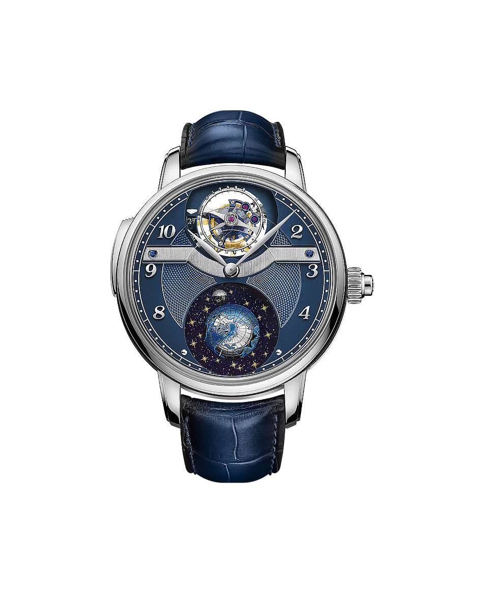 For more than ten years, Monblanc has enchanted the world with its Metamorphosis timepieces. With the Star Legacy Metamorphosis Limited Edition 8, this legendary manufacturer added another outstanding watch to its pantheon of inspired works of art. Due to an ingenious mechanism, created by hand out of more than 700 parts, this treasure unites the patented Exo Tourbillon complication and the astounding Metamorphosis concept. The mechanism gives the timepieces two distinct faces, each presenting their own exciting complications. When the shutters are closed, the intricate worldtime function and day / night indication are presented while open shutters display the stunning Exo Tourbillon in all its glory as well as a jumping date complication around the spinning tourbillon and a beautiful three-dimensional moon at six o'clock.