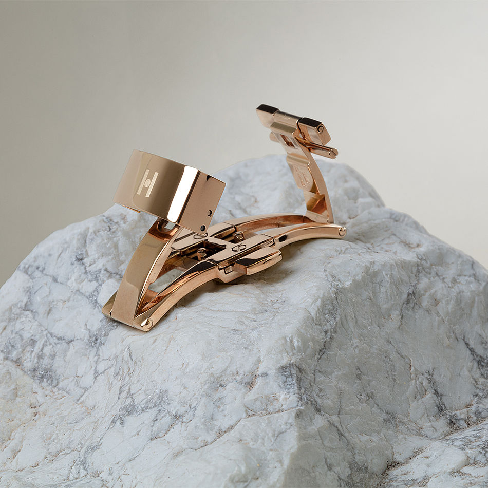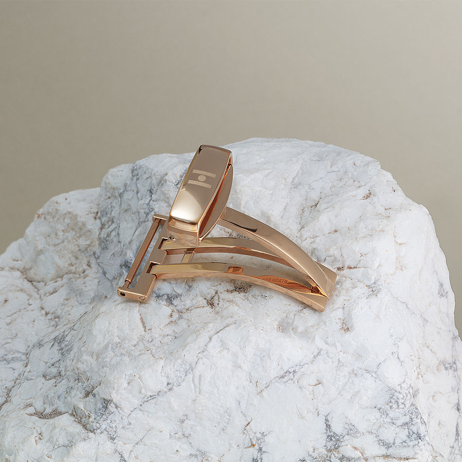 In the double folding clasp, or butterfly clasp, form and function harmonize with precision. This sophisticated mechanism folds in two places, imparting symmetry to your wrist. This construction not only enhances the snugness of the fit but also elevates the overall appearance of your timepiece. It is a choice that merges the finer details of design with the imperative of a secure clasp.