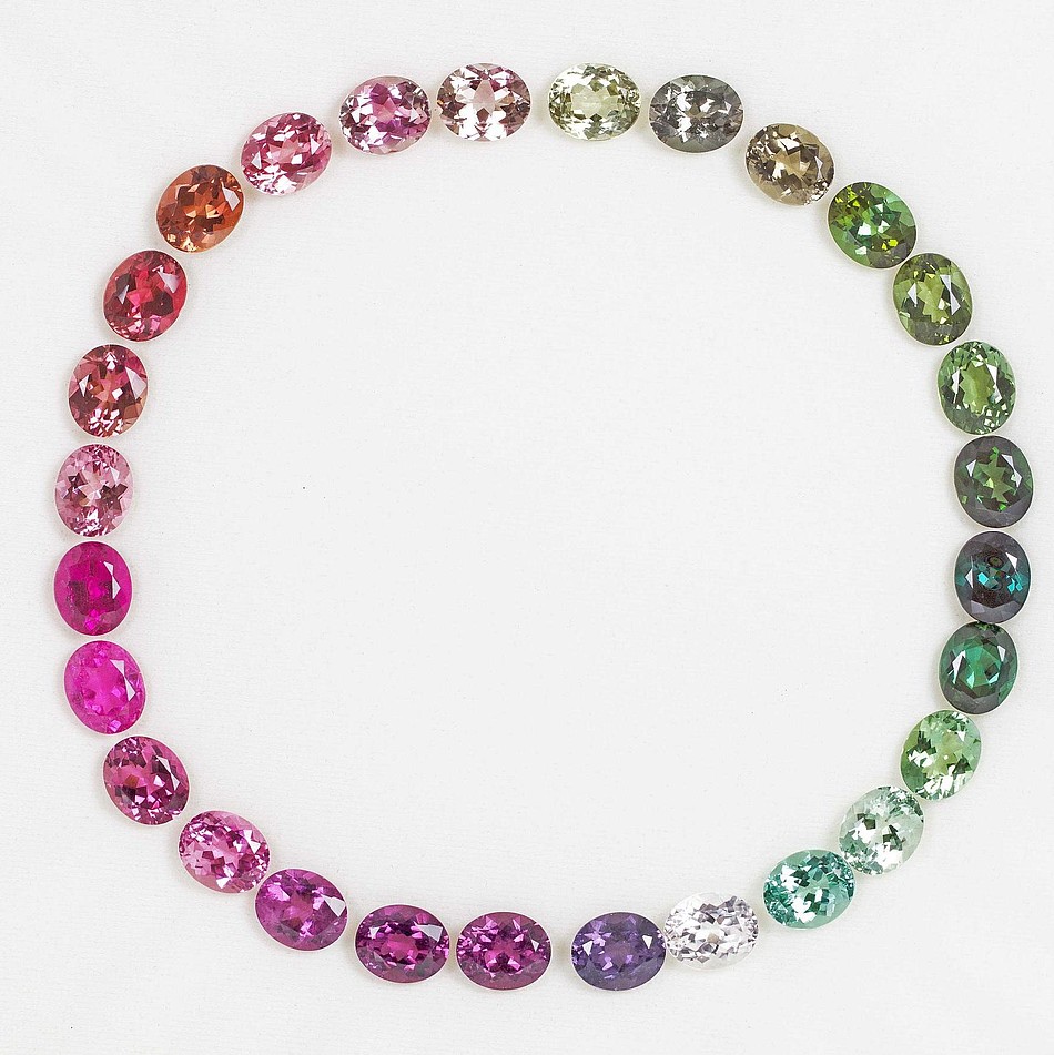 碧玺有很多种颜色。卢比来的颜色从粉色到红色,带有紫色到橙色的色调。古柏林宝石鉴定所将卢比来定义为粉红色到红色,不显现其它次生色。