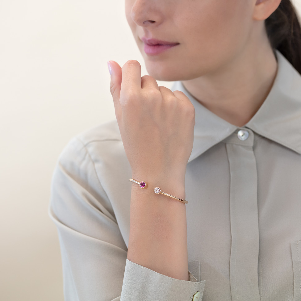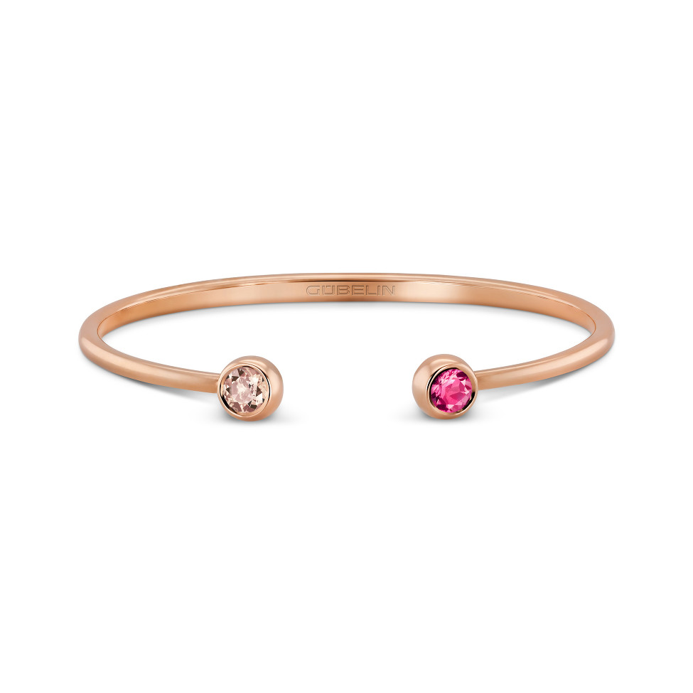Armreif aus Rotgold mit 1 rosa Morganit im runden Schliff von 0.70 ct und 1 pinkem Turmalin im runden Schliff von 0.79 ct.