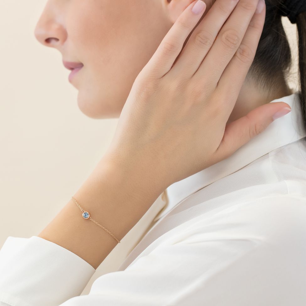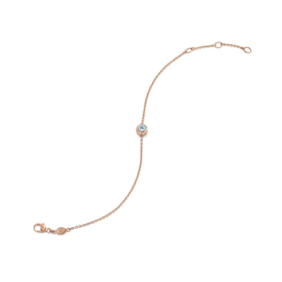 Rotgoldbracelet mit einem hellblauen runden Aquamarin von 0.35 ct.