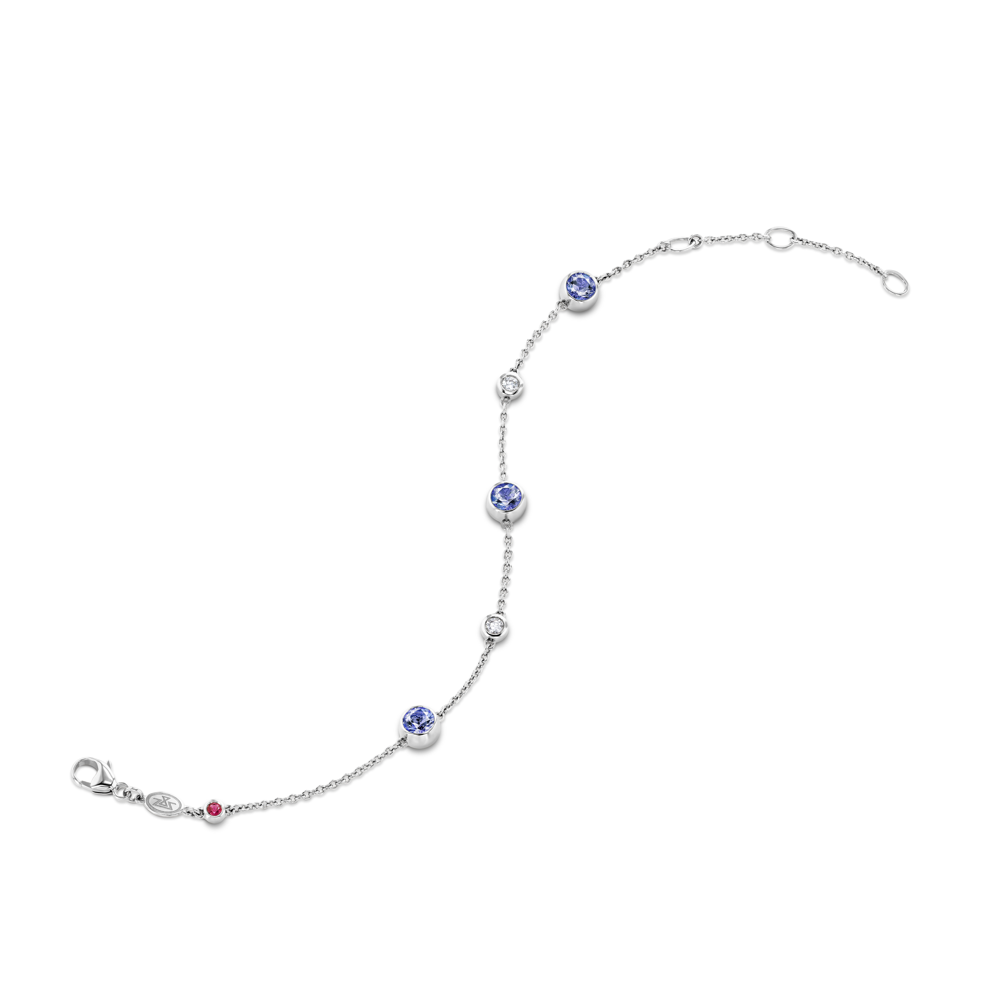 Weissgoldbracelet mit drei blauen runden Tansaniten von zusammen 1.11 ct sowie zwei Brillanten von zusammen 0.13 ct.