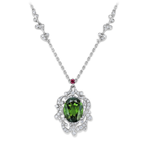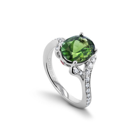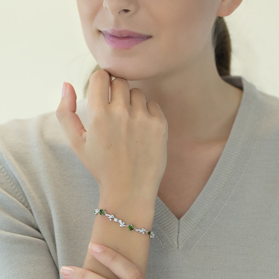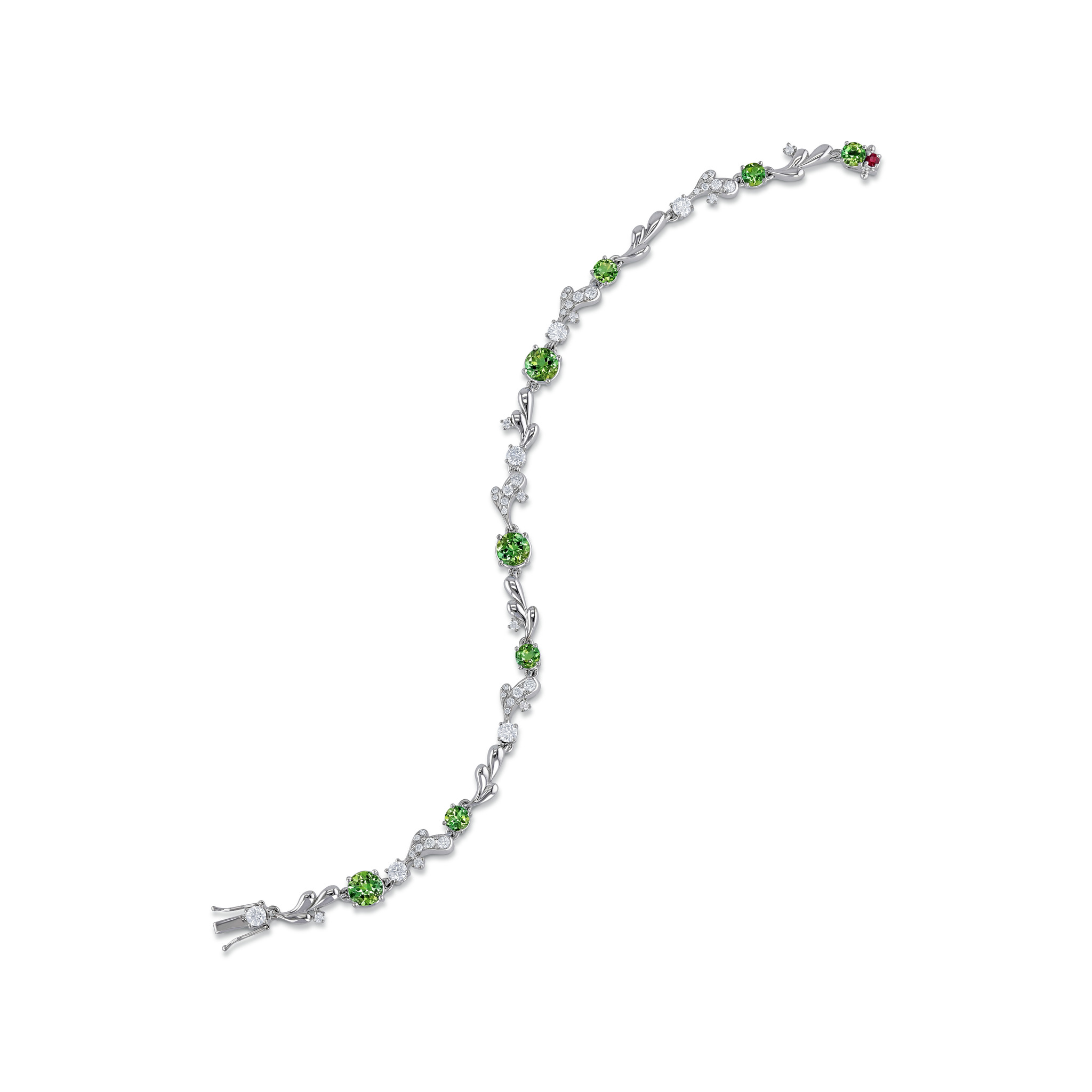 Weissgoldbracelet mit acht grünen runden Turmalinen von zusammen 3.56 ct sowie 45 Brillanten von zusammen 1.23 ct.