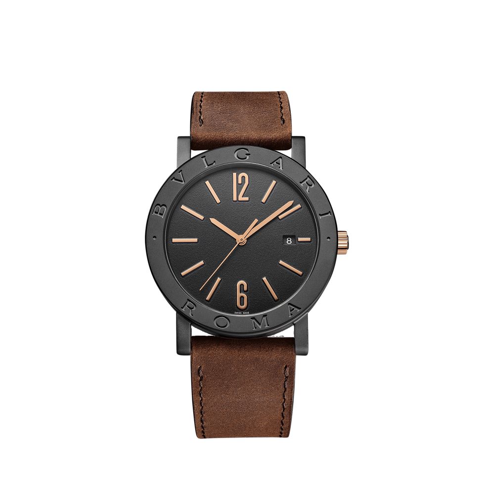 Mit der Bvlgari Bvlgari Man präsentiert die Maison die Städte-Sonderedition Roma. Das durch Black Diamond Like Carbon veredelte 41 mm Edelstahlgehäuse mit Bronzekrone ist mit einer Bvlgari Roma Gravur versehen und präsentiert das schwarze Zifferblatt mit arabischen Indizes und einer Datumanzeige. Der Gehäuseboden ermöglicht den Blick auf das BVL 191 Solotempo Automatikkaliber mit elegantem Côtes de Genève Finish. Ein braunes Kalbsleder Armband rundet den Zeitmesser ab.