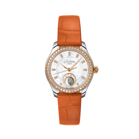vlgari feiert mit der Diva's Dream die Schönheit von Edelsteinen und kombiniert sie mit dem raffinierten Fächermotiv. Das Roségoldgehäuse mit der diamantenbesetzten Lünette ist mit einer Roségoldkrone versehen, die über einen pinkfarbenen Rubellit im Cabochonschliff verfügt. Auf dem Zifferblatt aus Malachit weisen Diamantindizes die Stunden. Ein Armband aus grünem Alligatorleder rundet den Zeitmesser ab.