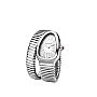 Die sinnliche Windung der beliebten Bvlgari Serpenti Tubogas ist ein Ausdruck von zeitgenössischem Glamour. Das einem Schlangenkopf nachempfundene, geschwungene 35 mm Edelstahlgehäuse präsentiert das silberne Zifferblatt mit Sonnenguillochierung und von Hand applizierten Indizes. Ein rosa Rubellit im Cabochon-Schliff ziert die Krone. Die Swiss Made Quarzuhr wird durch ein geschwungenes Edelstahl Tubogas Armband abgerundet.