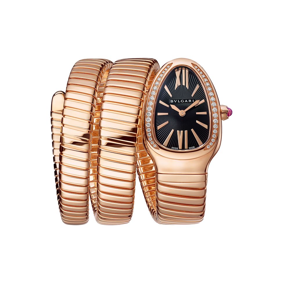 Diese Serpenti Tubogas Uhr vereint Roségold, Diamanten und ein schwarzes Opalin-Zifferblatt in einem ikonischen Design. Das doppelt geschwungene Armband erinnert an die geschmeidige Silhouette einer Schlange. Mit einem 35 mm Gehäuse, Rubellit-Krone und Sonnenguillochierung steht sie für zeitlose Verführung und höchste Handwerkskunst.