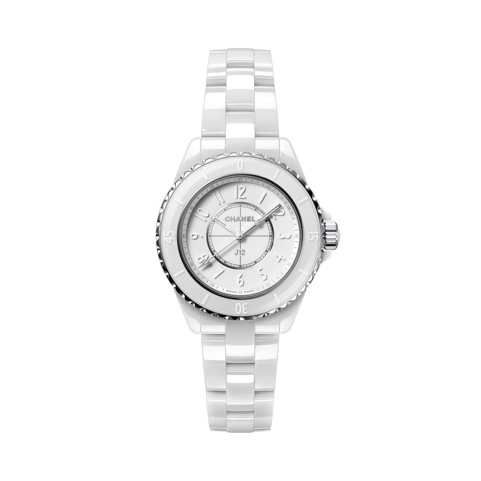 Die J12 Phantom von CHANEL bewahrt auch in der Neuauflage die Designcodes, die sie einst zur Legende machte. Das weisse Keramik- und Edelstahlgehäuse verfügt über eine Edelstahl umsäumte, einseitig drehbare Lünette. Diese umgibt das weiss lackierte Zifferblatt mit weissen arabischen Ziffern. Diese Uhr wird von einem hochpräzisen Swiss Made Uhrwerk angetrieben. Ein weisses Keramikgliederarmband rundet die Uhr ab.