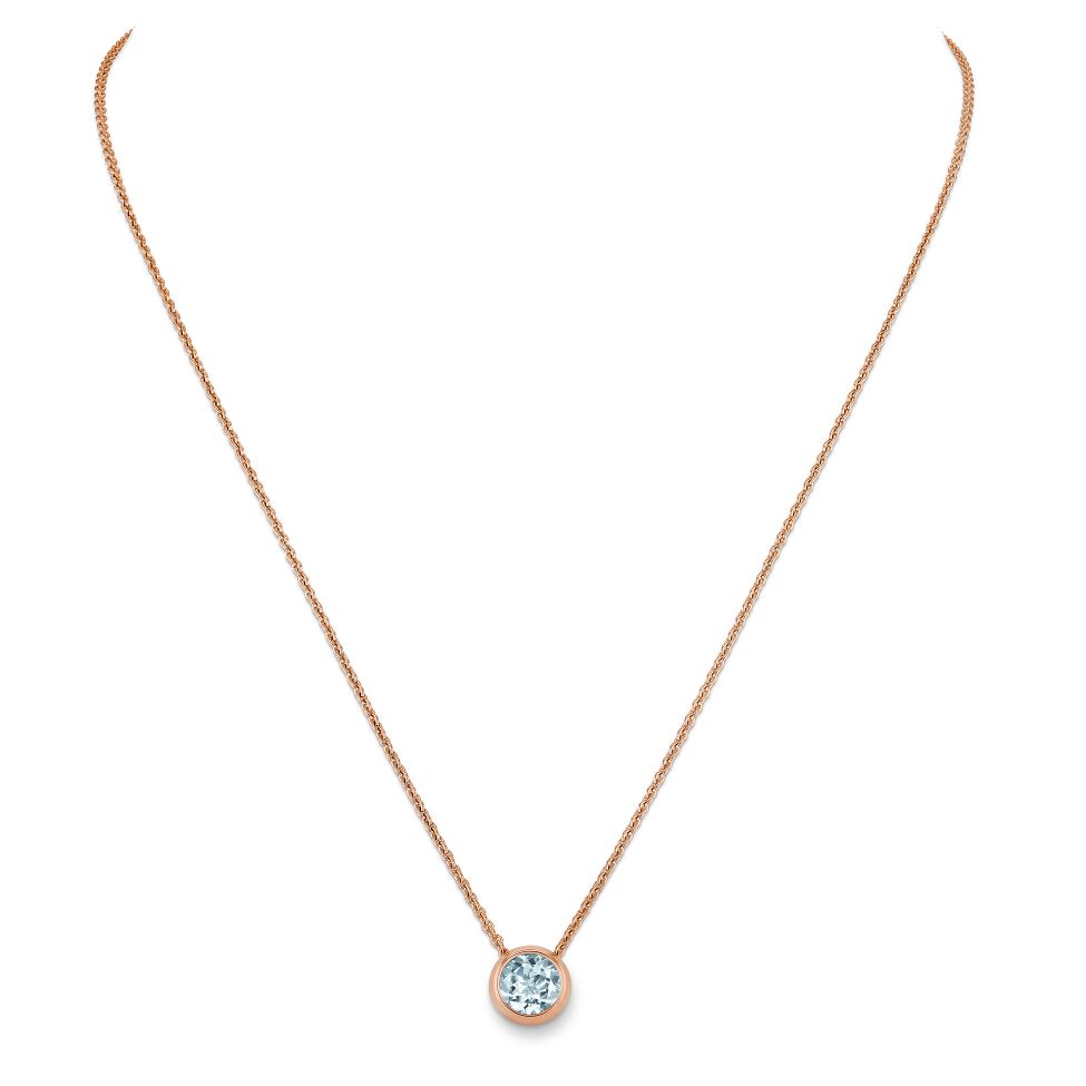 Rotgoldcollier mit einem hellblauen runden Aquamarin von 0.68 ct.