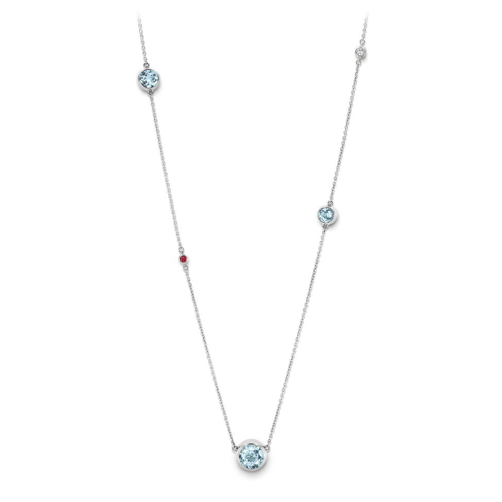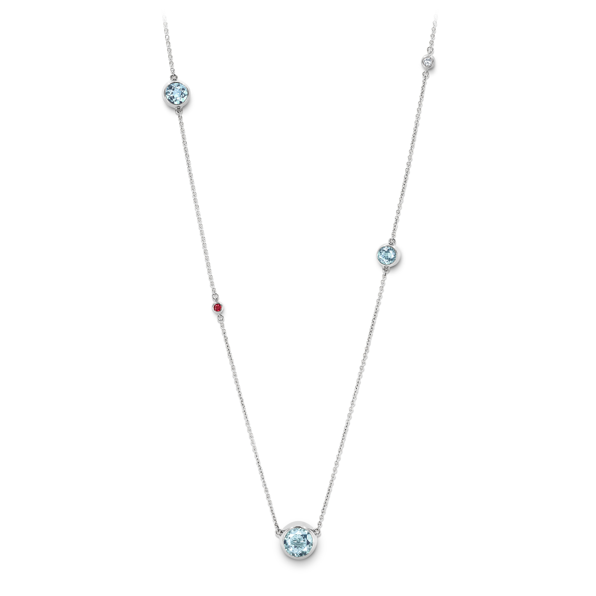 Weissgoldcollier mit acht hellblauen runden Aquamarinen von zusammen 5.34 ct sowie vier Brillanten von zusammen 0.25 ct.