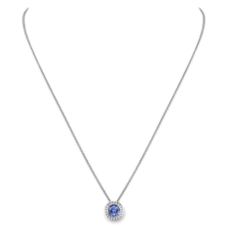 Weissgoldcollier mit einem blauen runden Tansanit von 0.97 ct sowie 20 Brillanten von zusammen 0.06 ct