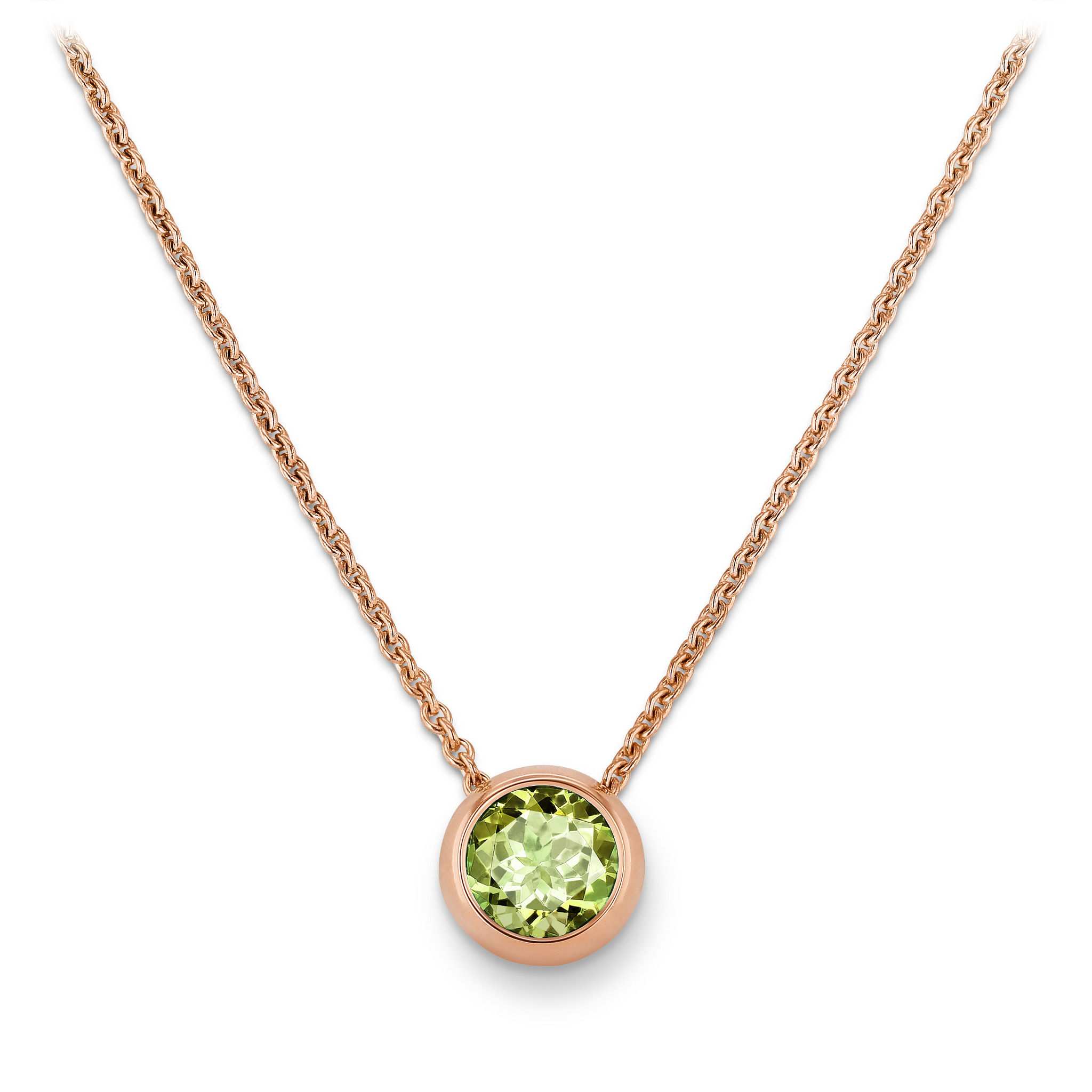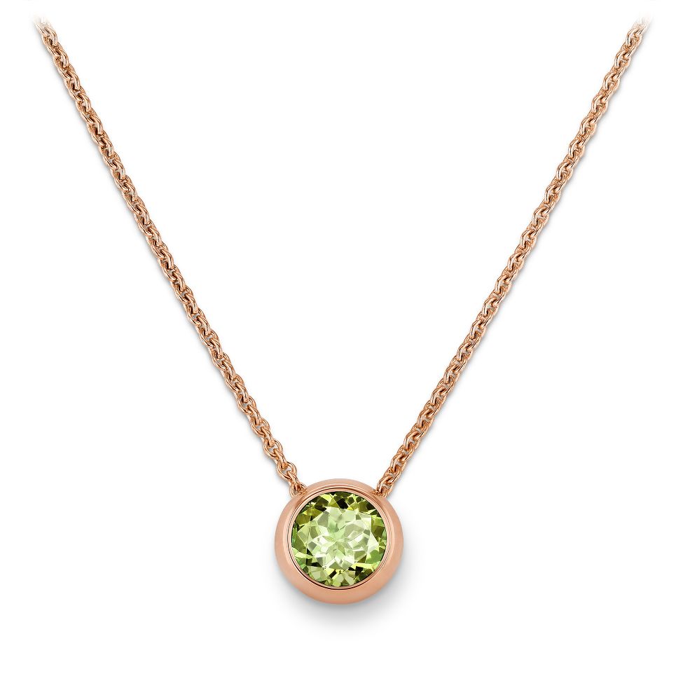 Collier aus Roségold mit einem grünen Turmalin rund von 0.93 ct.