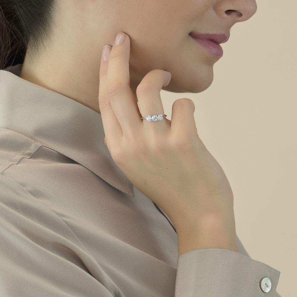 Weissgoldring mit drei Brillanten von zusammen 0.90 ct.