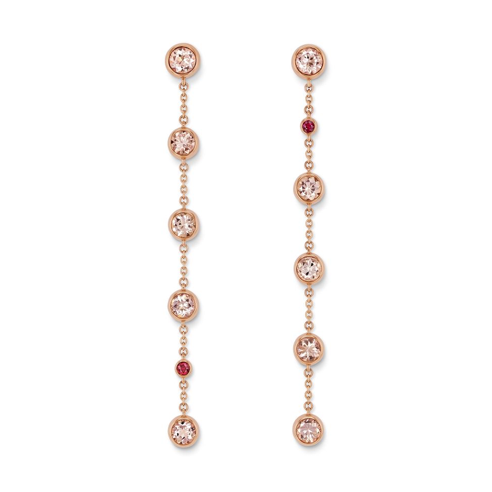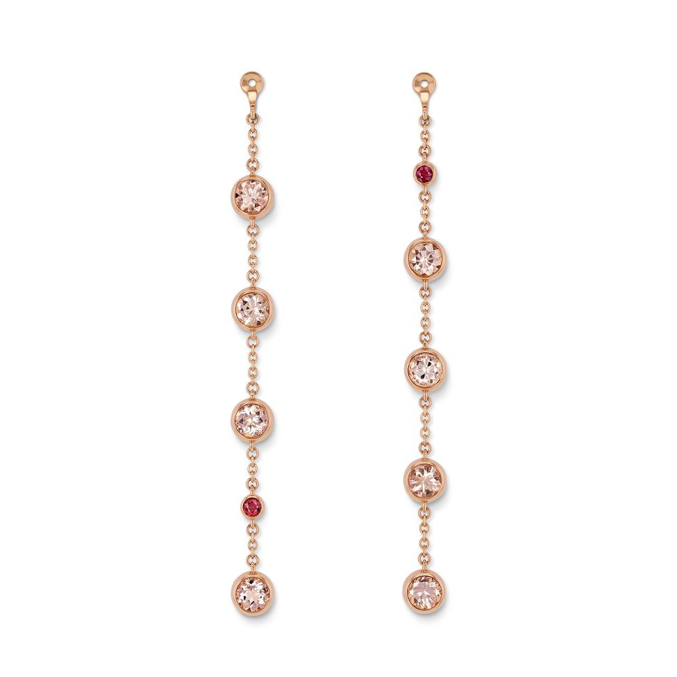 Ohrring-Anhänger in Rotgold mit acht rosafarbenen, runden Morganiten von total 2.90 ct. Anhänger können nur mit passenden Sparks of Fire Ohrsteckern getragen werden.