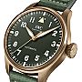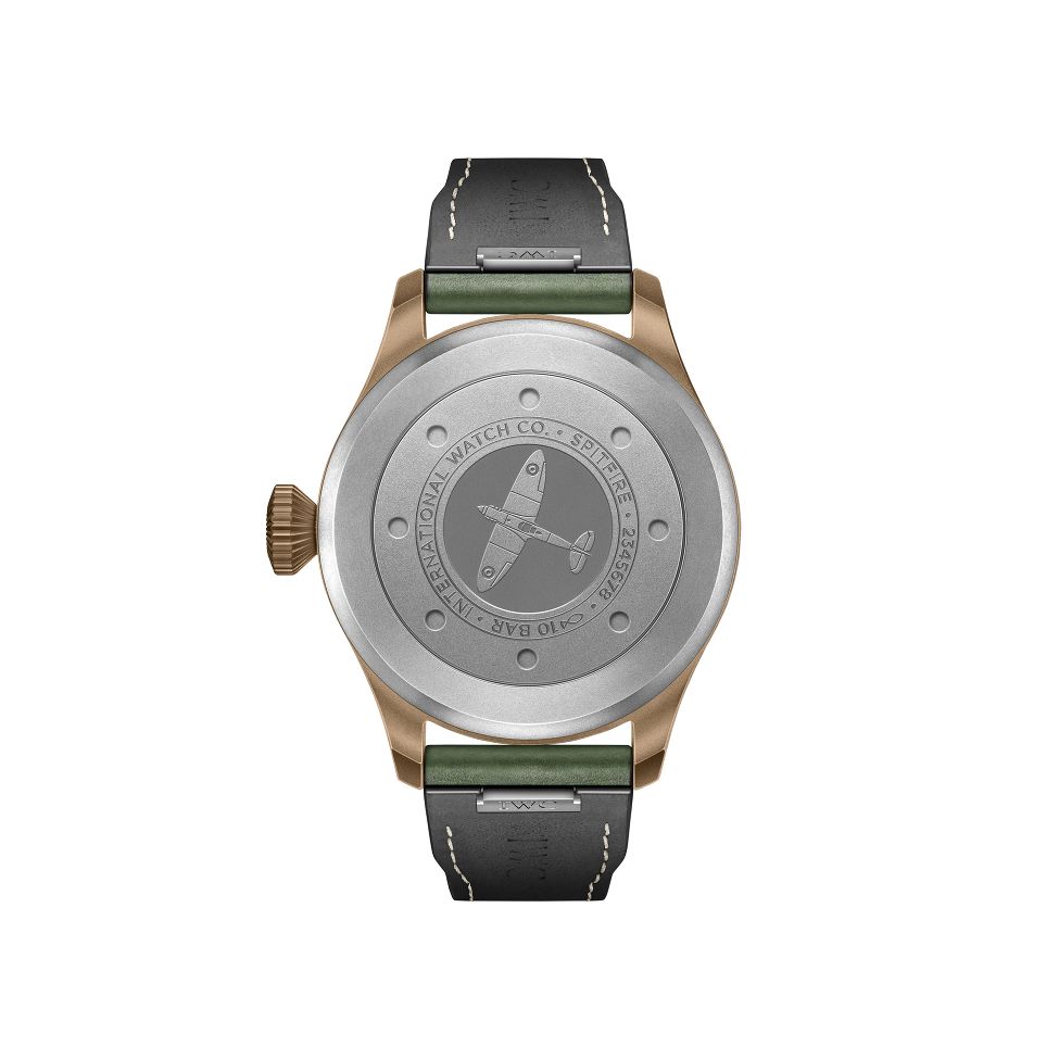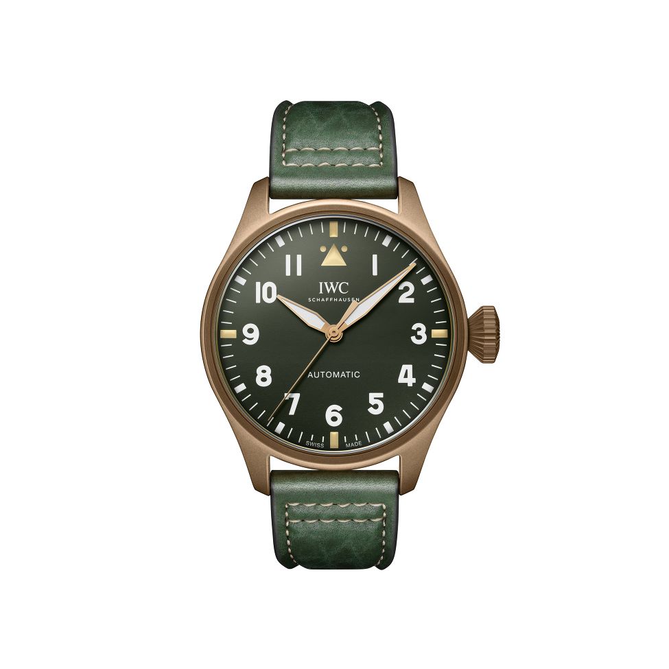 Die Pilot's Watch Automatic Spitfire orientiert sich am klaren Design der Zeitmesser, welche ab 1948 für die British Royal Airforce hergestellt wurden. Dieses Model verfügt über das typische Big Pilot's Design mit der markanten Kegelkrone in einem 43-Millimeter-Bronzegehäuse, kombiniert mit einer ausgeprägten militärischen Ästhetik. Das grüne Zifferblatt mit lumineszierenden Indizes und Zeigern harmoniert mit der Farbe des Bronzegehäuses. Dank des Kalibers 82100 verfügt die Uhr über eine Gangreserve von 60 Stunden, ein Weicheisen-Innengehäuse versichert die Flugtauglichkeit. Ein grünes Büffelleder Armband rundet die Uhr ab.