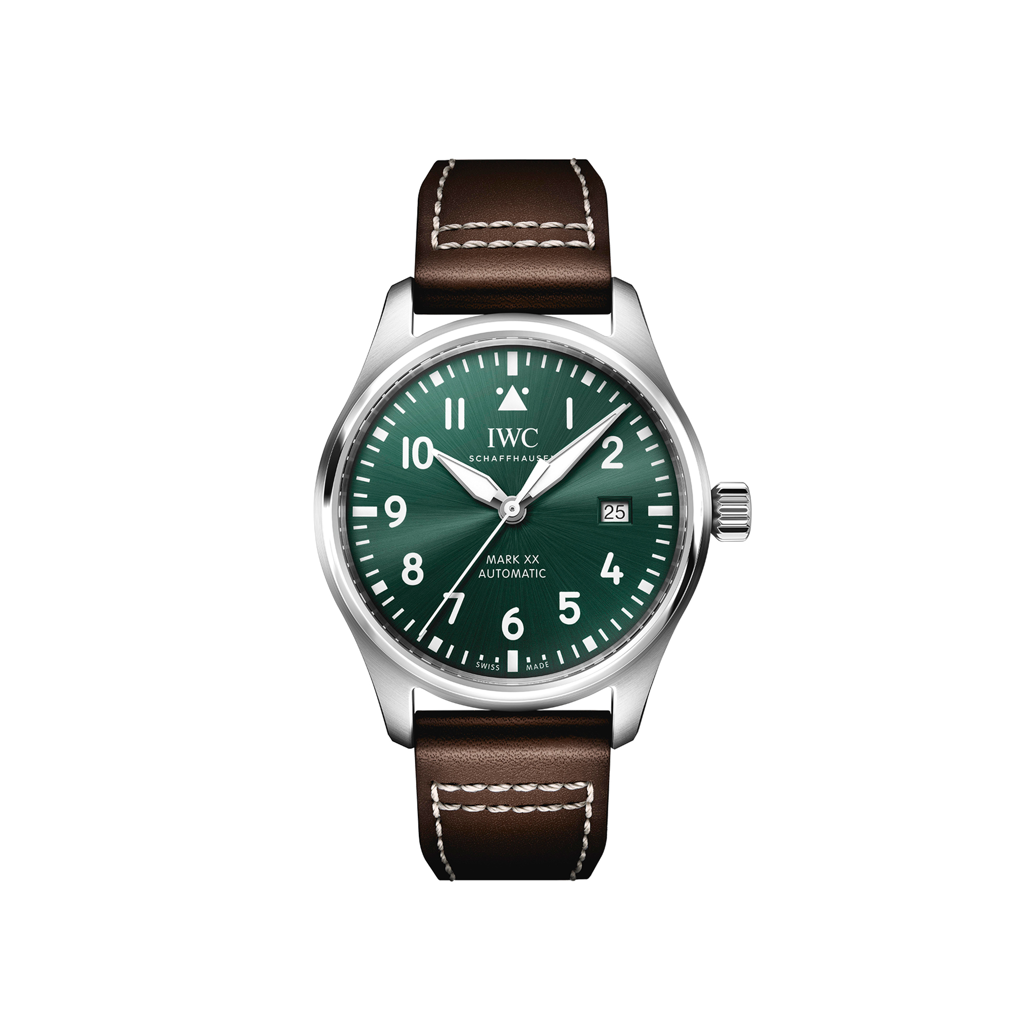 Die Mark XX ist die Nachfolgerin der legendären Mark 11, welche 1948 für die Navigatoren und Piloten der British Royal Air Force entwickelt wurde. In reduziertem Design und purer Essenz der technischen Funktionalität besticht dieses Modell mit einem robusten und korrosionsbeständigen Gehäuse aus Edelstahl. Das grüne Zifferblatt ist mit weissen Zahlen und Indizes mit Leuchtelementen versehen. Dank dem IWC-Manufakturkaliber 32111 verfügt die Uhr über eine Gangreserve von 120 Stunden. Ein braunes Kalbslederarmband mit einer Dornschliesse und Schnellwechselsystem verleiht dem Zeitmesser den letzten Schliff.