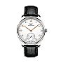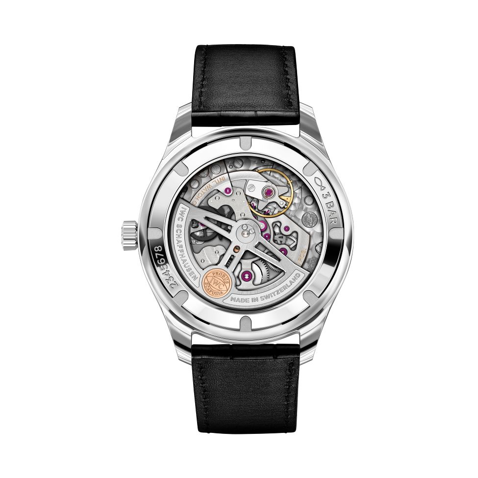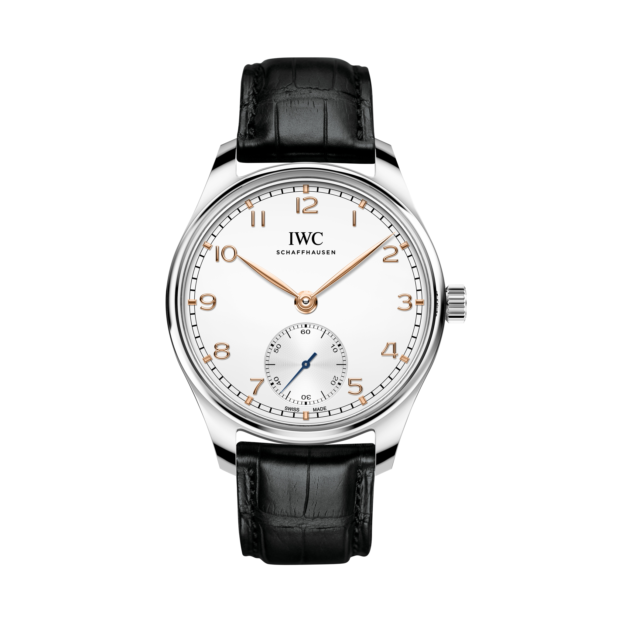 Die IWC Portugieser Automatic 40 ist eine Hommage an die legendäre Ikone der späten 1930er-Jahre. Das Edelstahlgehäuse umgibt das versilberte Zifferblatt mit vergoldeten Indizes und Zeiger sowie einer kleinen Sekunde mit Stoppvorrichtung und gebläutem Zeiger. Der transparente Gehäuseboden ermöglicht den Blick auf das IWC Manufakturwerk Kaliber 82200. Ein schwarzes Alligatorleder Armband vollendet den Zeitmesser.