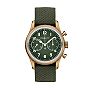 Für die Montblanc 1858 Automatic Chronograph Limited Edition orientierte sich die Maison an den Minerva Chronographen der 1920er und 30er-Jahre. Das 42 mm Bronzegehäuse umgibt das khakigrüne Zifferblatt mit Chronographenanzeigen, beigefarbenen Leuchtziffern und lumineszierenden Zeigern in Roségold. Das Automatikkaliber MB 25.11 bietet eine Gangreserve von 48 Stunden. Ein khakigrünes Nato-Armband mit einer bronzebeschichteten Edelstahl-Dornschliesse rundet die limitierte Ausgabe von 1858 Exemplaren ab.