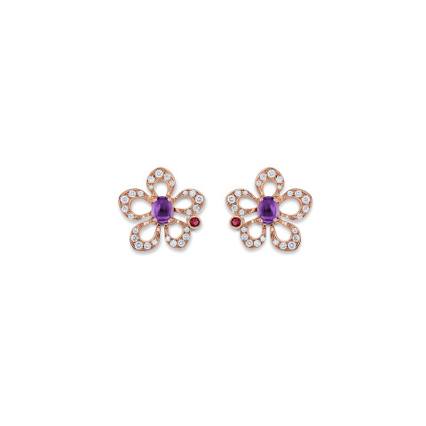 Ohrstecker in Rotgold mit zwei violetten Amethysten im Cabochonschliff von zusammen 0.61 ct, sowie 70 Brillanten von zusammen 0.40 ct.