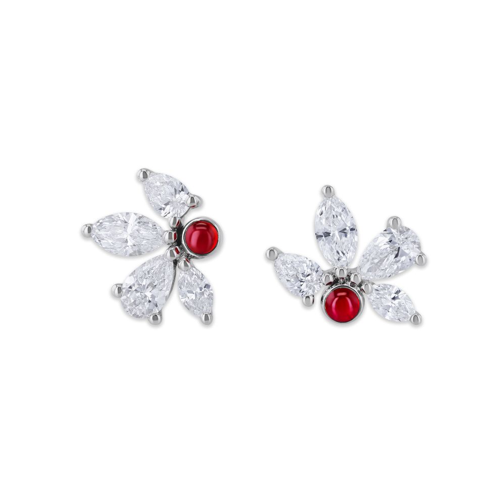 Ohrstecker aus Weissgold mit 4 Tropfenschliff-Diamanten von zusammen 0.59 ct und 4 Marquiseschliff-Diamanten von zusammen 0.78 ct.