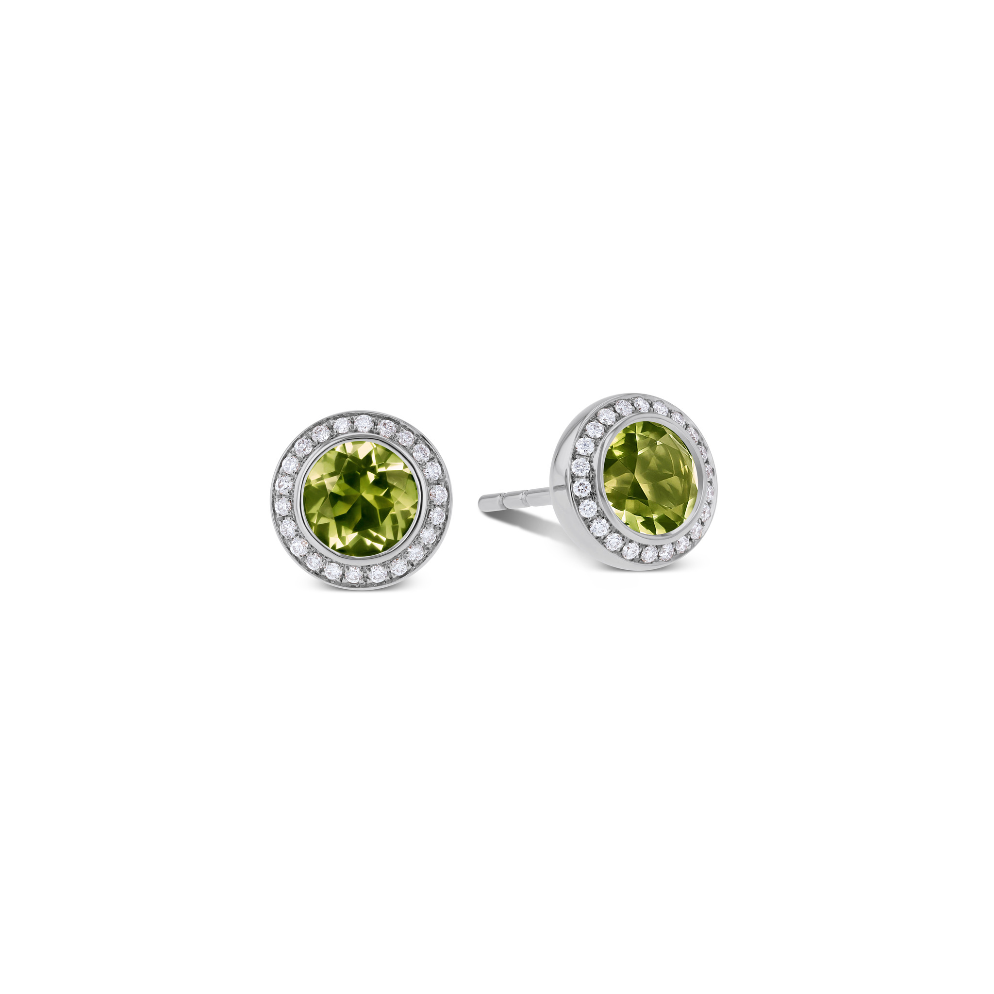 Weissgold Ohrstecker mit 2 grünen runden Turmalinen von zusammen 1.59 ct sowie 44 Brillanten von zusammen 0.14 ct.