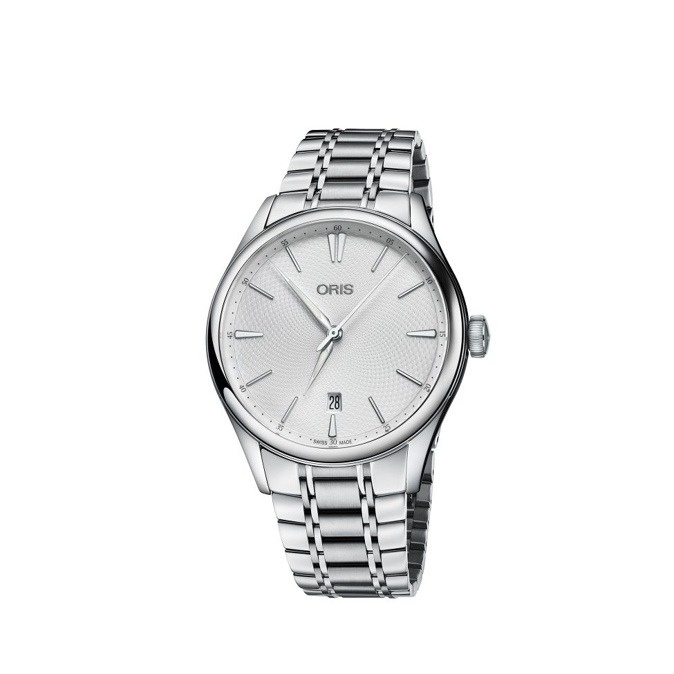 Diese 40 mm Oris Divers Sixty-Five Date vereint Retro-Charme mit moderner Technik. Das Edelstahlgehäuse und gewölbte Saphirglas umrahmen ein ozeangrünes Zifferblatt mit markanten Indizes. Das Automatikwerk Kaliber 733 bietet 38 Stunden Gangreserve und Schnellkorrektur für das Datum. Bis 5 bar wasserdicht, komplettiert ein Edelstahlarmband mit Faltschliesse den nostalgischen Auftritt.