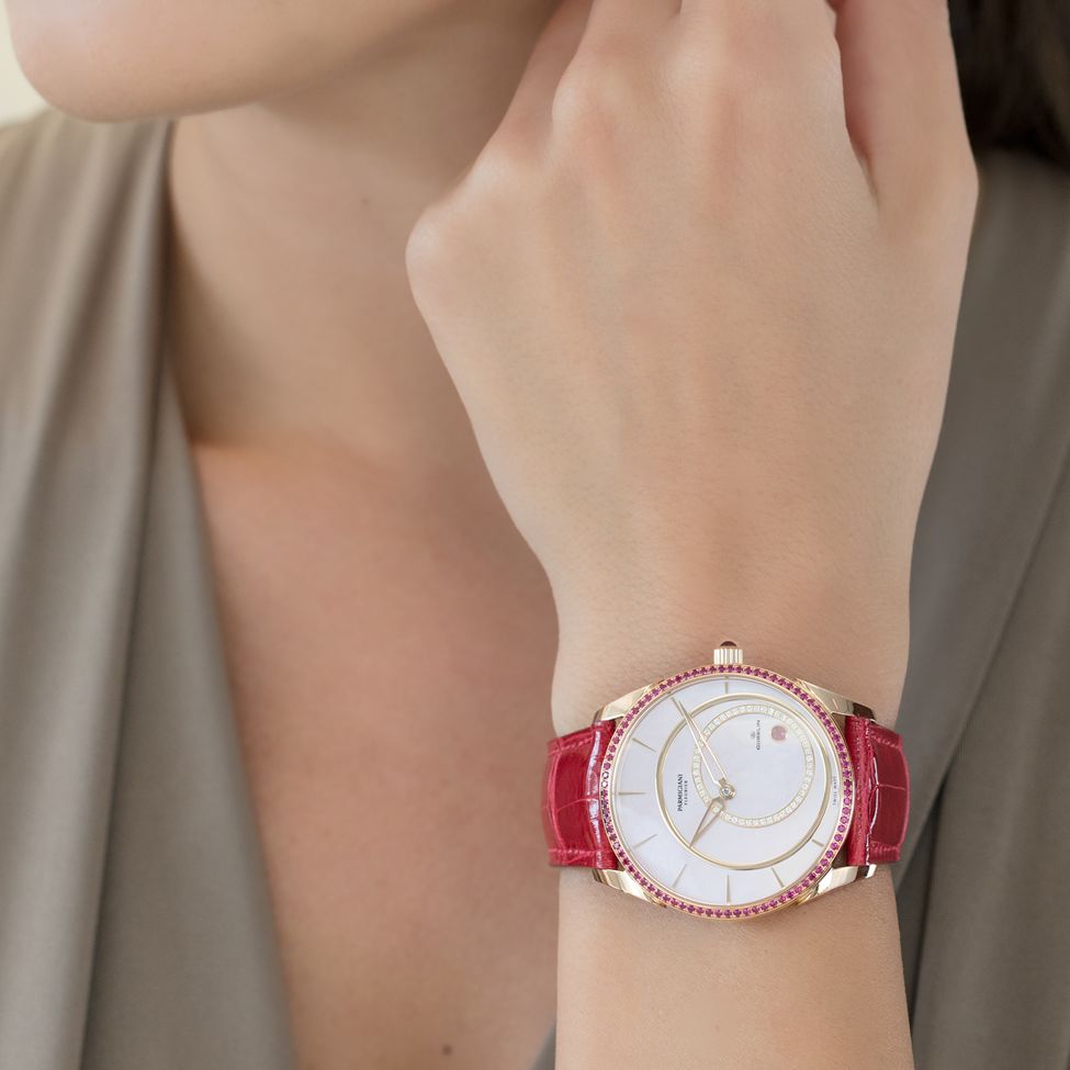 Die Tonda 1950 von Parmigiani Fleurier verkörpert zeitlose Eleganz und Präzision in einem wunderschönen Design. Dieses Meisterwerk wurde speziell für Liebhaber hergestellt und besitzt ein schlankes 39mm Gehäuse aus poliertem 18-karätigem Roségold, das Luxus und feinen Geschmack vereint. Das Zifferblatt mit dem Saphirglas zeigt schlanke, applizierte Indizes und elegant Delta-förmige Zeiger, die sowohl Lesbarkeit als auch Stil gewährleisten. Angetrieben von einem ultra-dünnen, automatischen Uhrwerk, beeindruckt diese exquisite Uhr mit einer Gangreserve von 48 Stunden. Die Tonda 1950 ist elegant vollendet mit einem roten Alligatorlederarmband und symbolisiert Luxus, Präzision und unübertroffene Handwerkskunst für den anspruchsvollen Einzelnen.