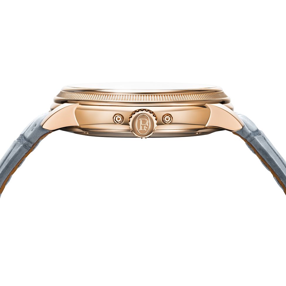 Die Parmigiani Fleurier Toric Quantième Perpétuel praesentiere sich in 18 Karat Roségold mit dem Kaliber PF733. Der ewige Kalender ergaenzt die klare Anzeige von Stunden und Minuten, erhaeltlich mit 60 Stunden Gangreserve. Ein handkorniertes Zifferblatt in Goldton und die charakteristische Toric-Luenette betonen die Eleganz dieser Uhr, die Tradition und Moderne vereint.