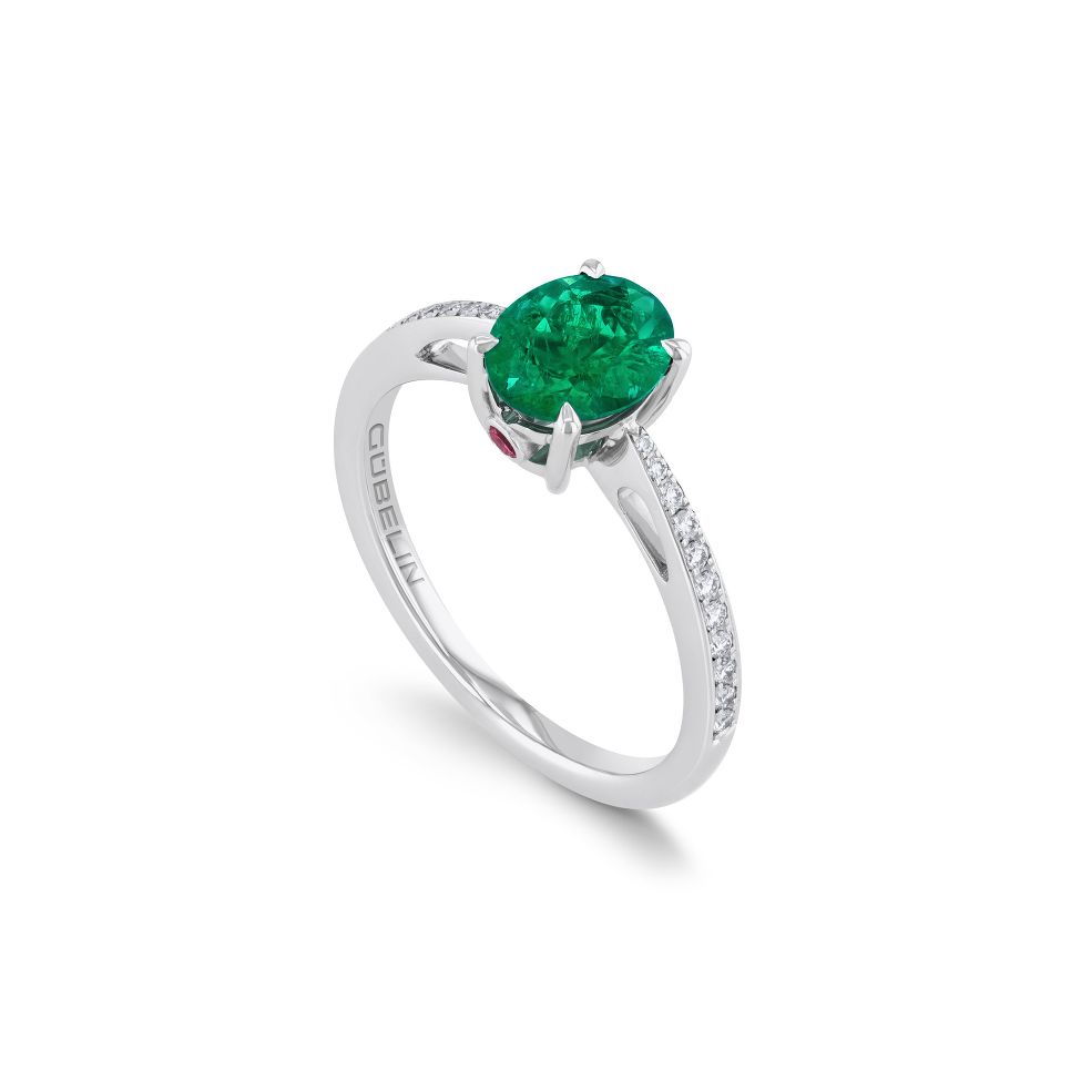 Weissgoldring mit einem ovalen Smaragd aus Kolumbien von 1.43 ct sowie 22 Brillanten von zusammen 0.10 ct.
