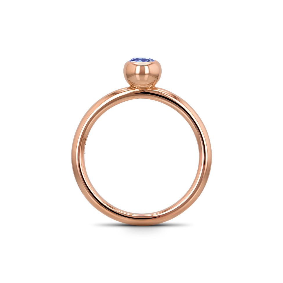 Rotgoldring mit einem runden Tansanit, 4.3 mm.