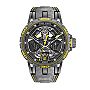 Roger Dubuis präsentiert die Excalibur Huracán Performante, eine gemeinsame Entwicklung mit dem renommierten Rennstall Lamborghini Squadra Corse. Das Titangehäuse mit geriffelter Lünette umgibt das skelettierte Zifferblatt mit gelben Details an Minutenring, den lumineszierenden Zeiger und Krone. Die Unruh des skelettierten Automatikkalibers RD630 mit einer Gangreserve von 60 Stunden ist um 12° geneigt aufgehängt. Ein schwarzes Kautschukarmband mit Alcantara®-Einlage rundet den auf 88 Stück limitierten Zeitmesser ab.