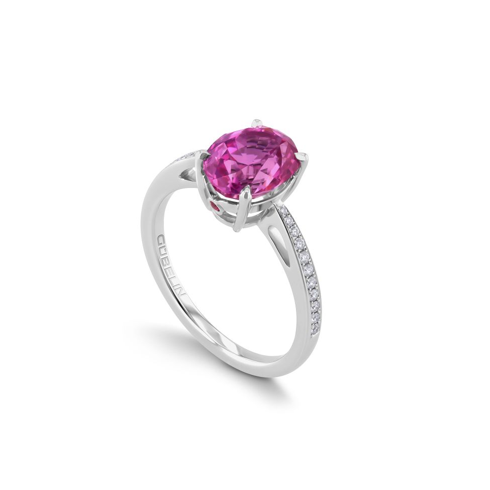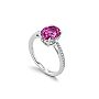 Ring aus Weissgold mit 1 ovalen pink-violetten Saphir von 3.03 ct und 22 Diamanten von zusammen 0.10 ct.