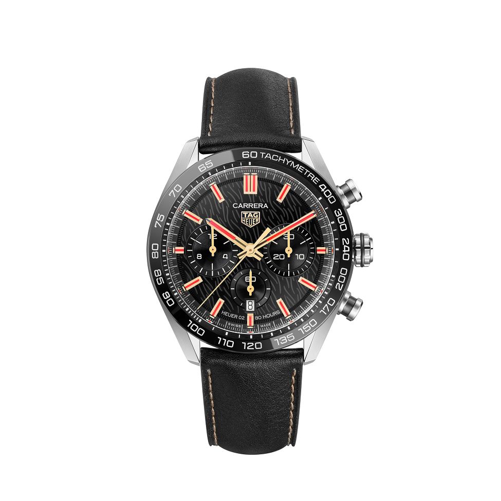 Die TAG Heuer Carrera verbindet sportliche Praezision mit markanter Aesthetik. Ein Edelstahlgehaeuse mit passendem Stahlband trifft auf das automatische Calibre Heuer 02. Der Chronograph misst Stoppzeiten muhelos, die Tachymeterskala ermoeglicht Geschwindigkeitsermittlung. Limitierte Edition von 500 Exemplaren ? ein technisch fokussierter Zeitmesser mit modernem Auftritt.
