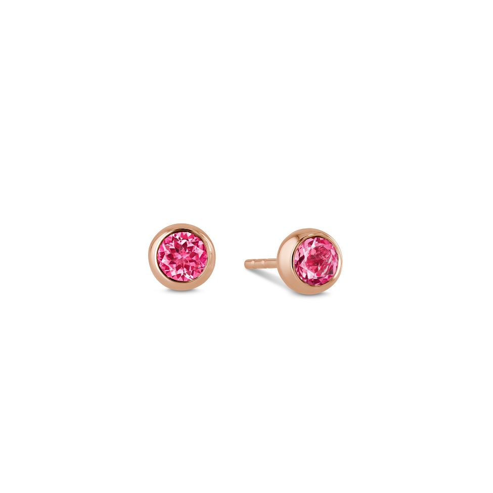 Rotgold Ohrstecker mit zwei pinken runden Turmalinen von zusammen 0.70 ct.