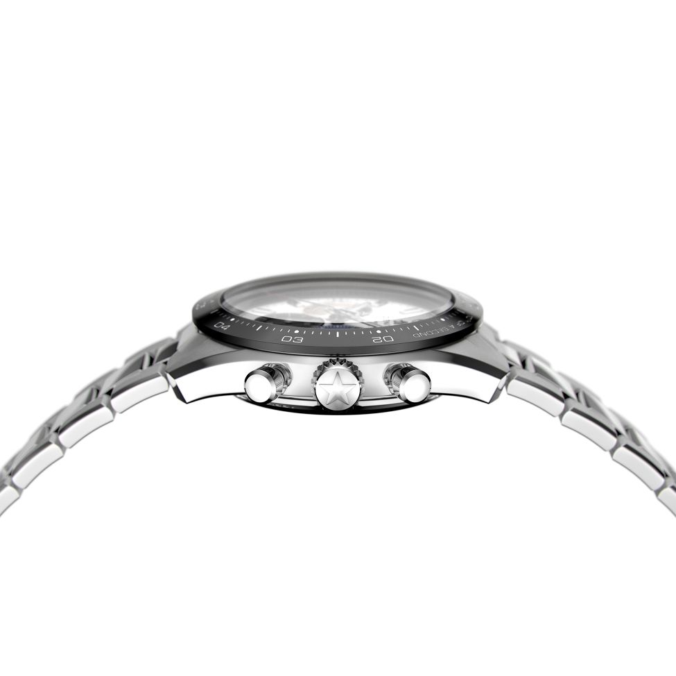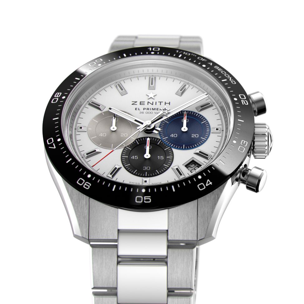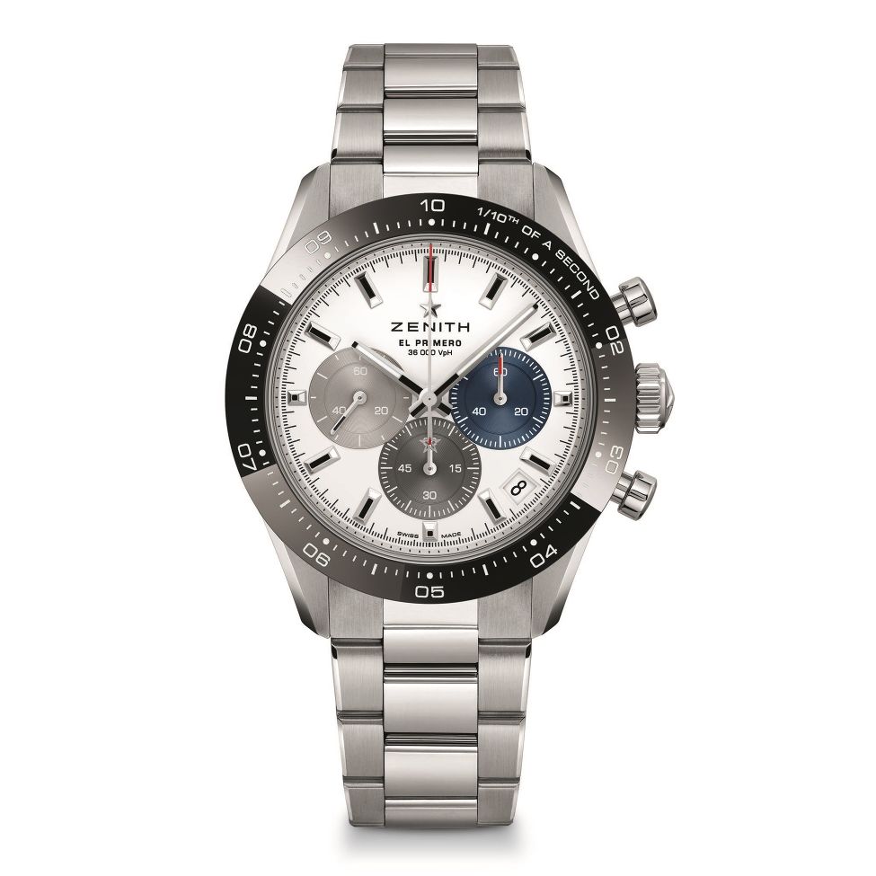 Die Zeith Chronomaster Sport präsentiert sich in stilsicherem, unverkennbaren Design und kann die verstrichene Zeit auf die Zehntelsekunde genau messen. Das Edelstahlgehäuse mit schwarzer Keramiklünette umgibt das mattweisse Zifferblatt mit drei individuell gefärbten Chronographenanzeigen, die von einer Datumanzeige ergänzt werden. Der transparente Gehäuseboden präsentiert die neuste Generation des Kalibers El Primero 3600. Ein Edelstahl Gliederarmband rundet den Zeitmesser ab.