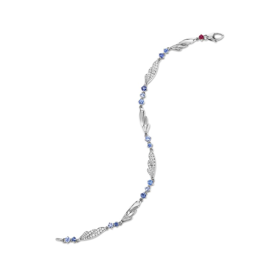 White gold bracelet with 14 blue round sapphires totalling 1.53 ct as well as 75 brilliant-cut diamonds totalling 0.39 ct.