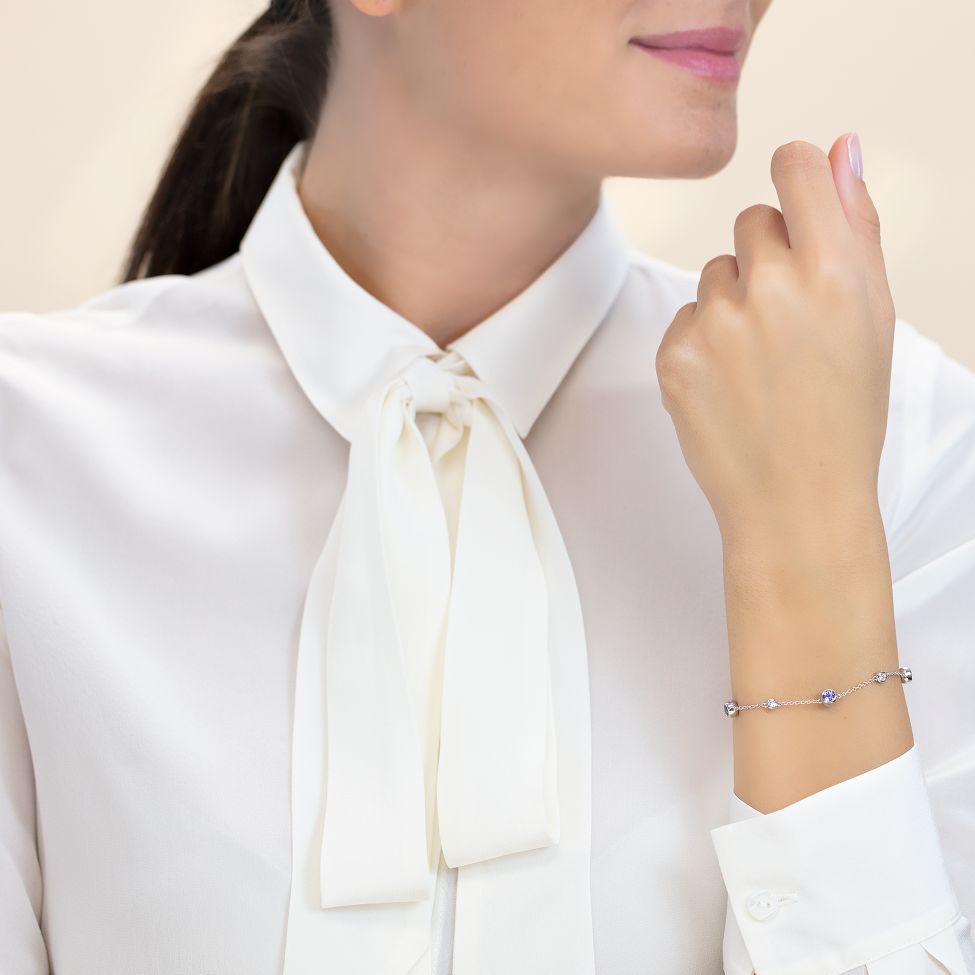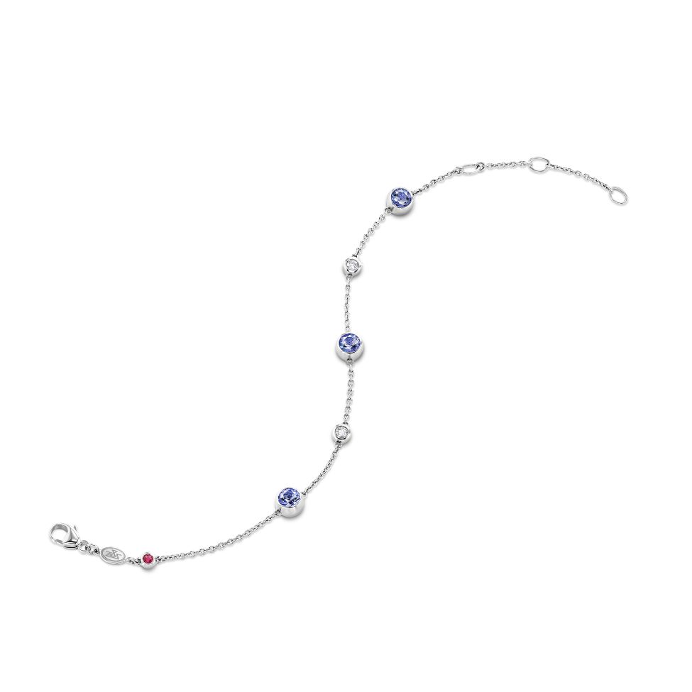 White gold bracelet with three blue round tanzanites totalling 1.11 ct as well as two brilliant-cut diamonds totalling 0.13 ct.