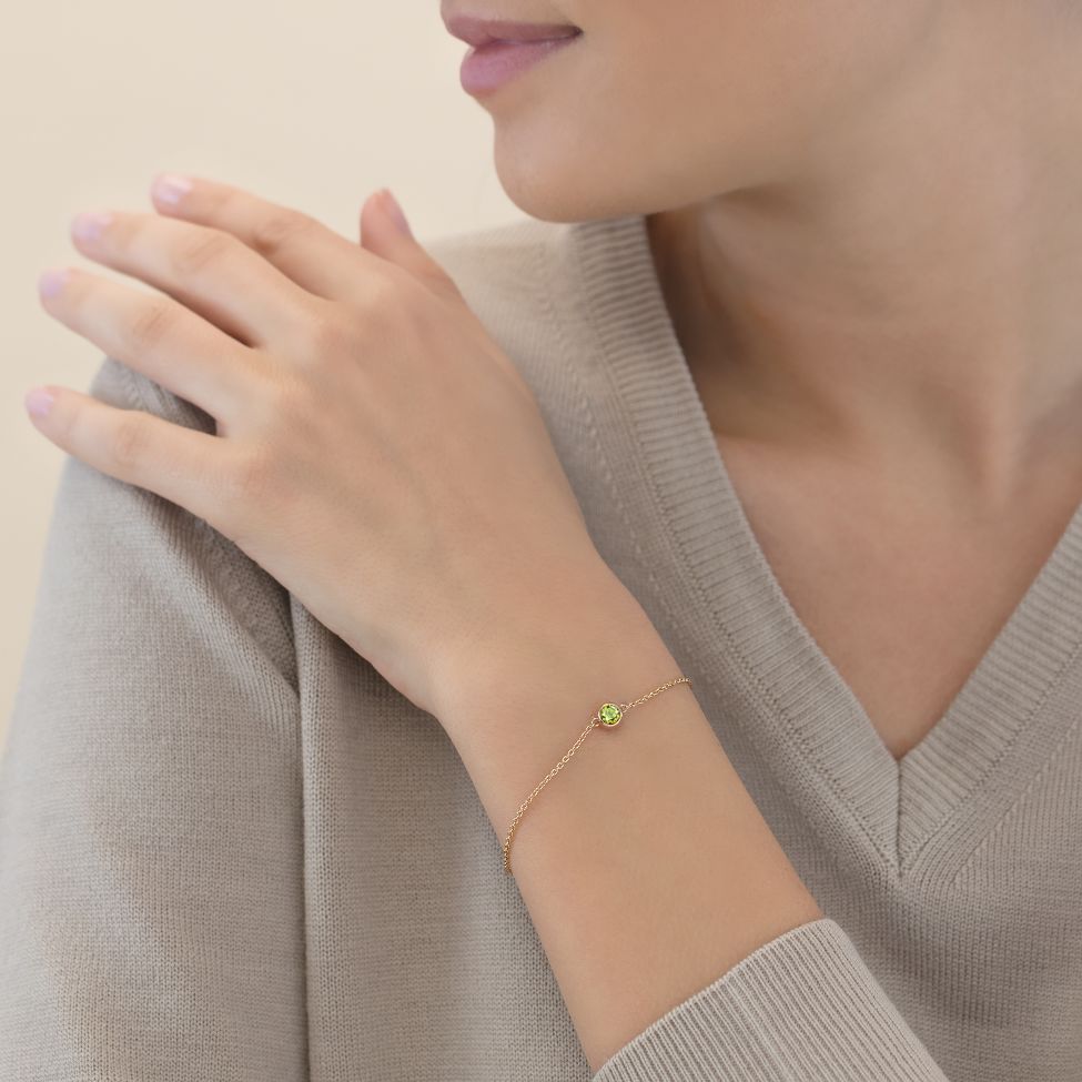 Red gold bracelet with a green round tourmaline of 0.36 ct.