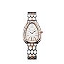 First introduced at Baselworld 2019, the Bvlgari Serpenti Seduttori lends time a precious edge. The elegant stainless steel case is fitted with a diamond-set rose gold bezel, a cabochon-cut pink rubellite decorates the crown. On the white dial, rose gold tone Roman indices mark the hours. A stainless steel and rose gold link bracelet with a folding clasp adds the finishing touch to this Swiss Made quartz watch.