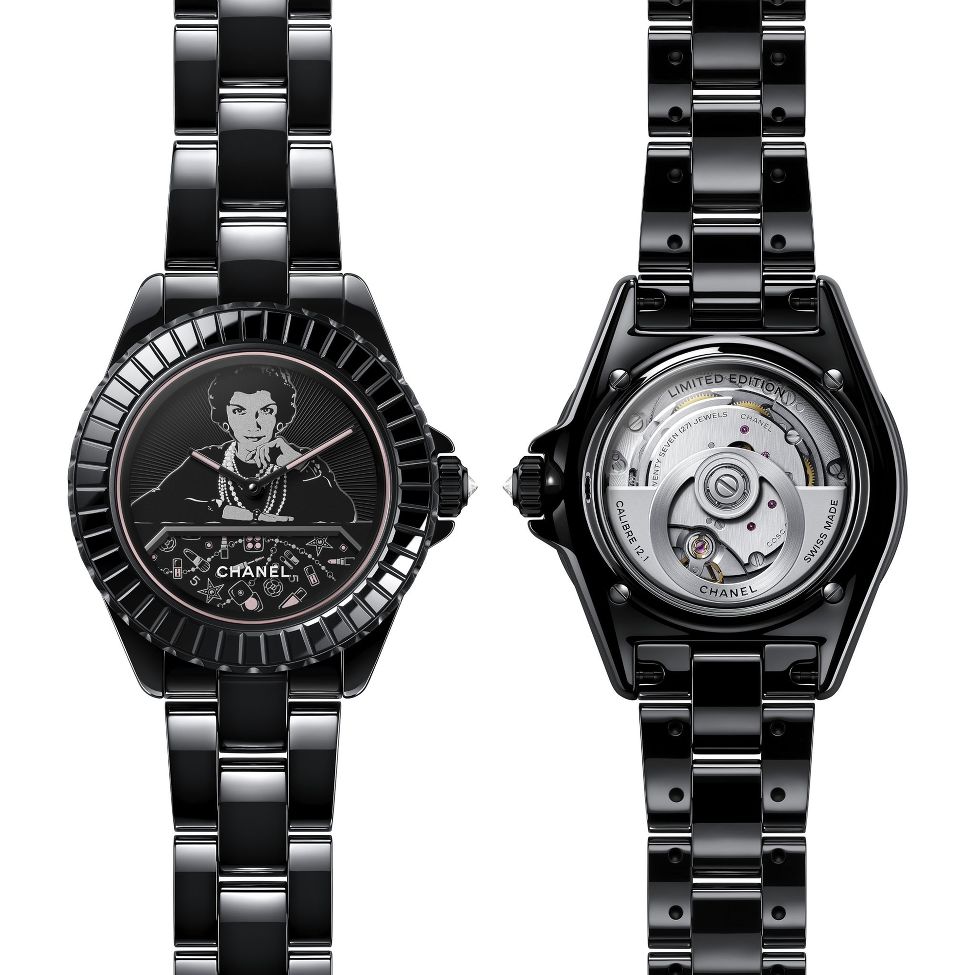 Crafted in black ceramic, the Mademoiselle J12 Blush merges feminine elegance with technical excellence. Its self-winding Calibre 12.1 is housed in a 38 mm case, 12.76 mm thick. As a limited edition, it reflects CHANEL's iconic style with a modern flair.